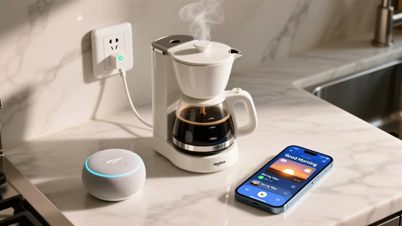 Setup tip: Use the Alexa app → Routines → Add Action → Smart Home → your coffee maker plug → turn on at 7:00 AM every weekday.